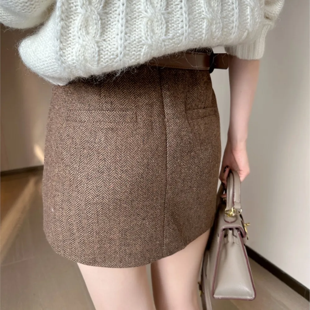 2025 Autumn Side Split Woolen Mini Skirts Women High Waist Slimming Short Skirt Korean Streetwear Sexy Spicy A-Line Skirts Mujer