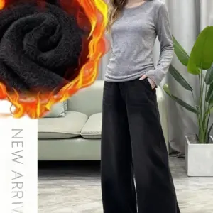Womens Jeans Y2k Jeans Flared Trousers Black Gray Straight Leg Winter Warm Fleece Lined Loose Fit High Waist Wide Leg Fashion